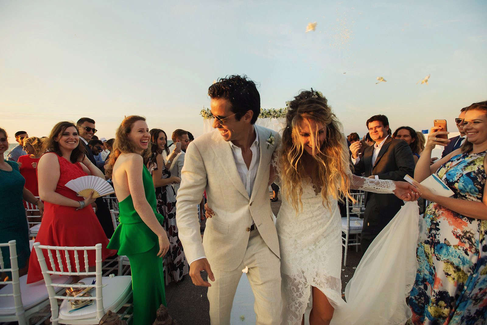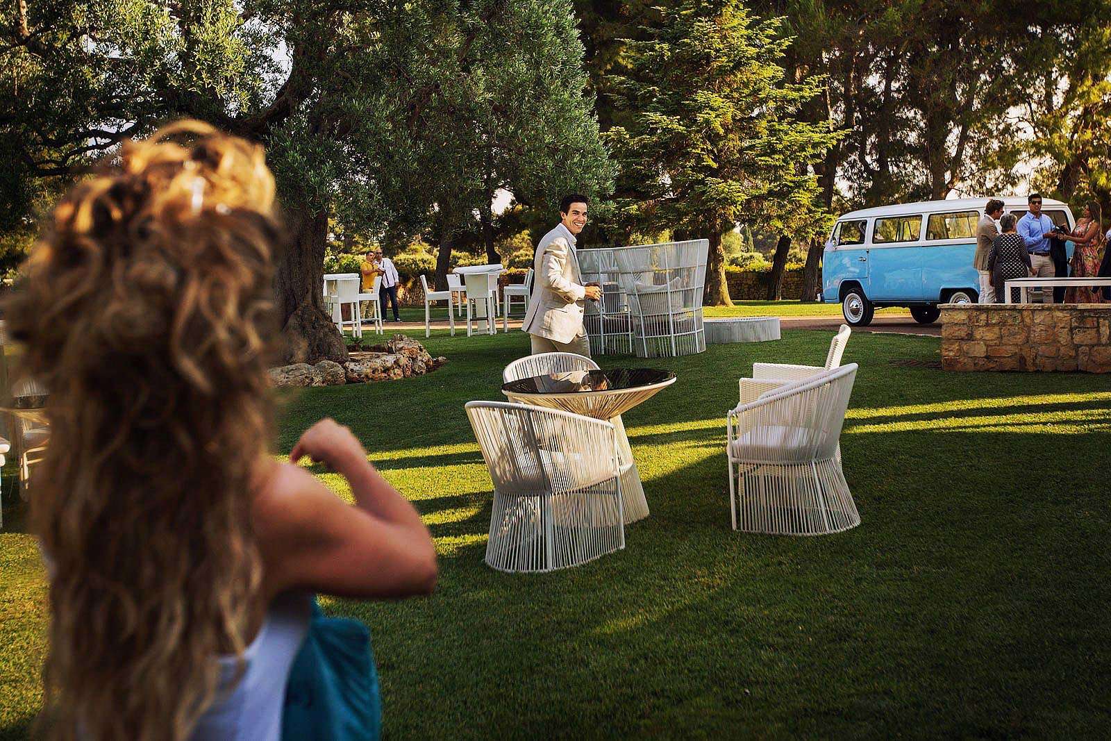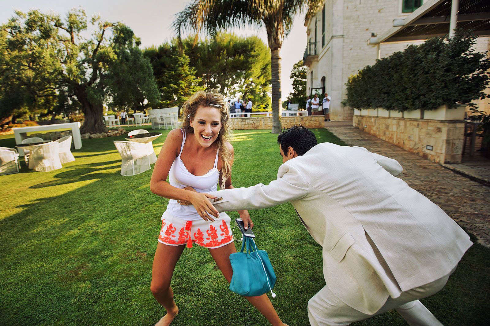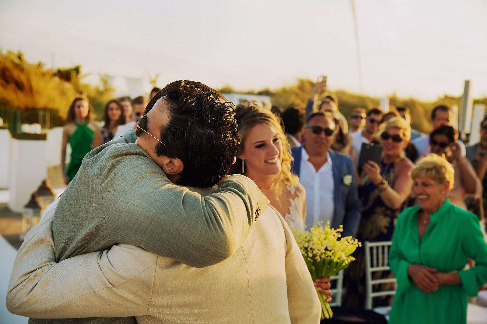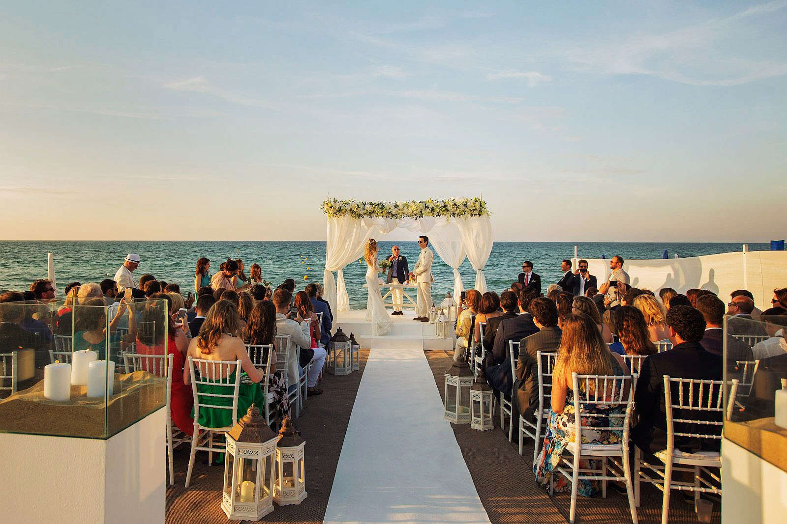 Nella caratteristica e intima atmosfera di Masseria Torre Catena, a Polignano a Mare, i due novelli sposi hanno trascorso i momenti dei preparativi, tra emozioni, ansie, sorrisi felici e anche un po’ agitati. La location in cui Paulo e Ornella hanno celebrato il loro matrimonio e hanno festeggiato con amici e parenti durante il ricevimento è stata Coccaro Beach, una terrazza elegante che affaccia sul mare di Monopoli con le sue verdi palme e i raffinati baldacchini bianco candido.