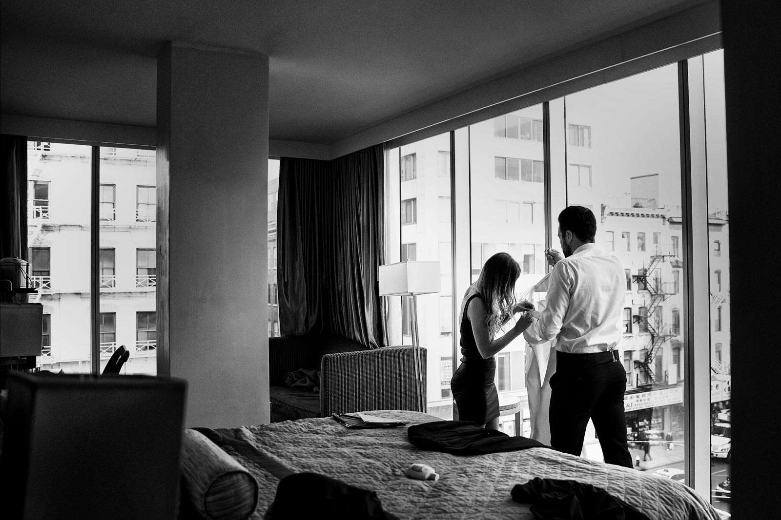 Come in un set cinematografico, le fotografie di questo giorno, che ricordano il genere street photography, sono state scattate per le strade di New York, dove Francesca e Giuseppe hanno gioito per il loro sì e dove hanno vissuto emozioni che sempre custodiranno. Un bouquet acquistato pochi minuti prima della cerimonia da un venditore di fiori ambulante che si trovava vicino al municipio dove Francesca e Giuseppe si sono scambiati gli anelli, il taxi metropolitano con cui qui si sono recati, il comfort del Wyndham Garden Hotel, dove gli sposi si sono preparati per il giorno più importante della loro vita, le emozioni di quel giorno sono state un susseguirsi di sorprese inattese.